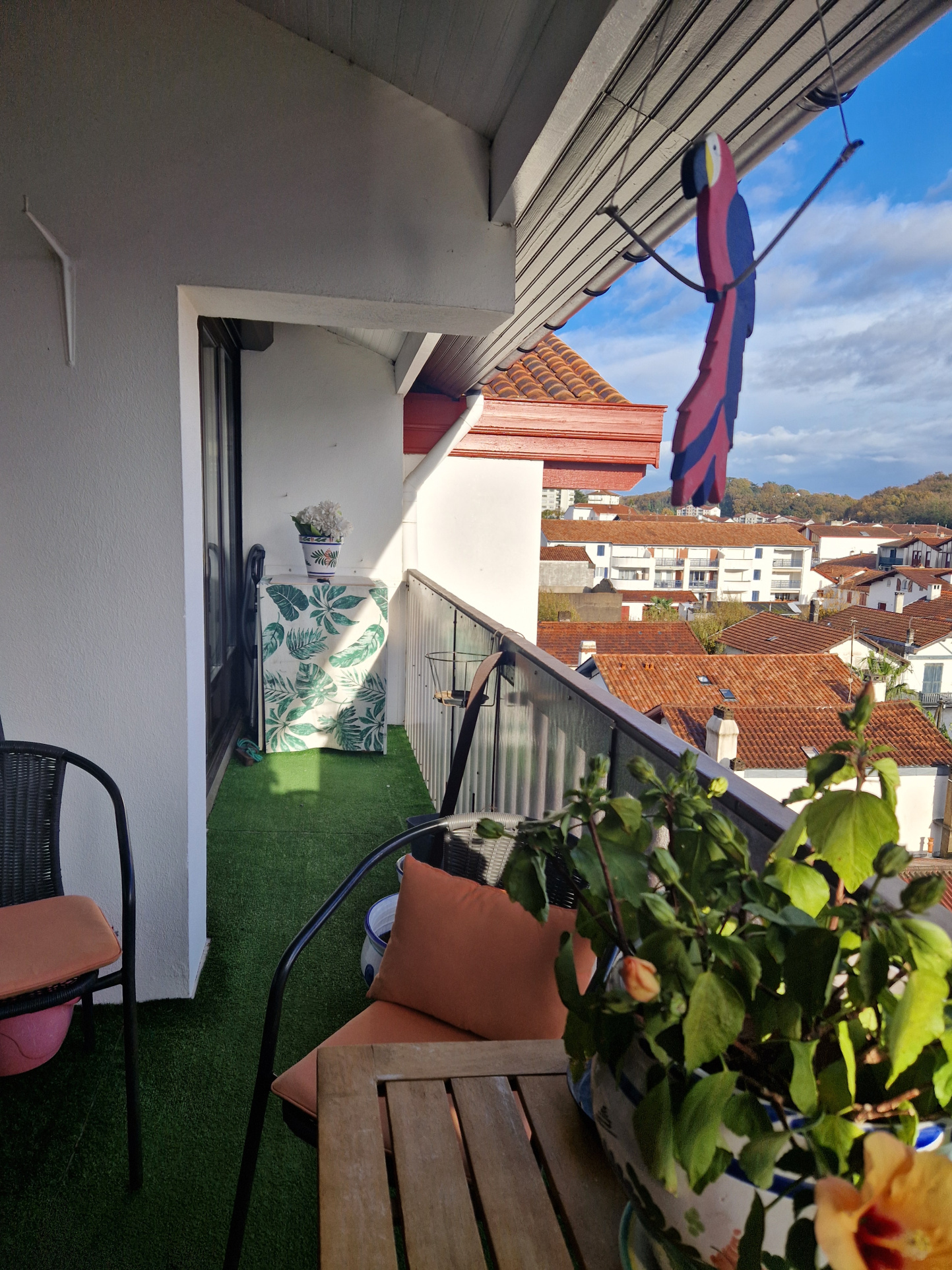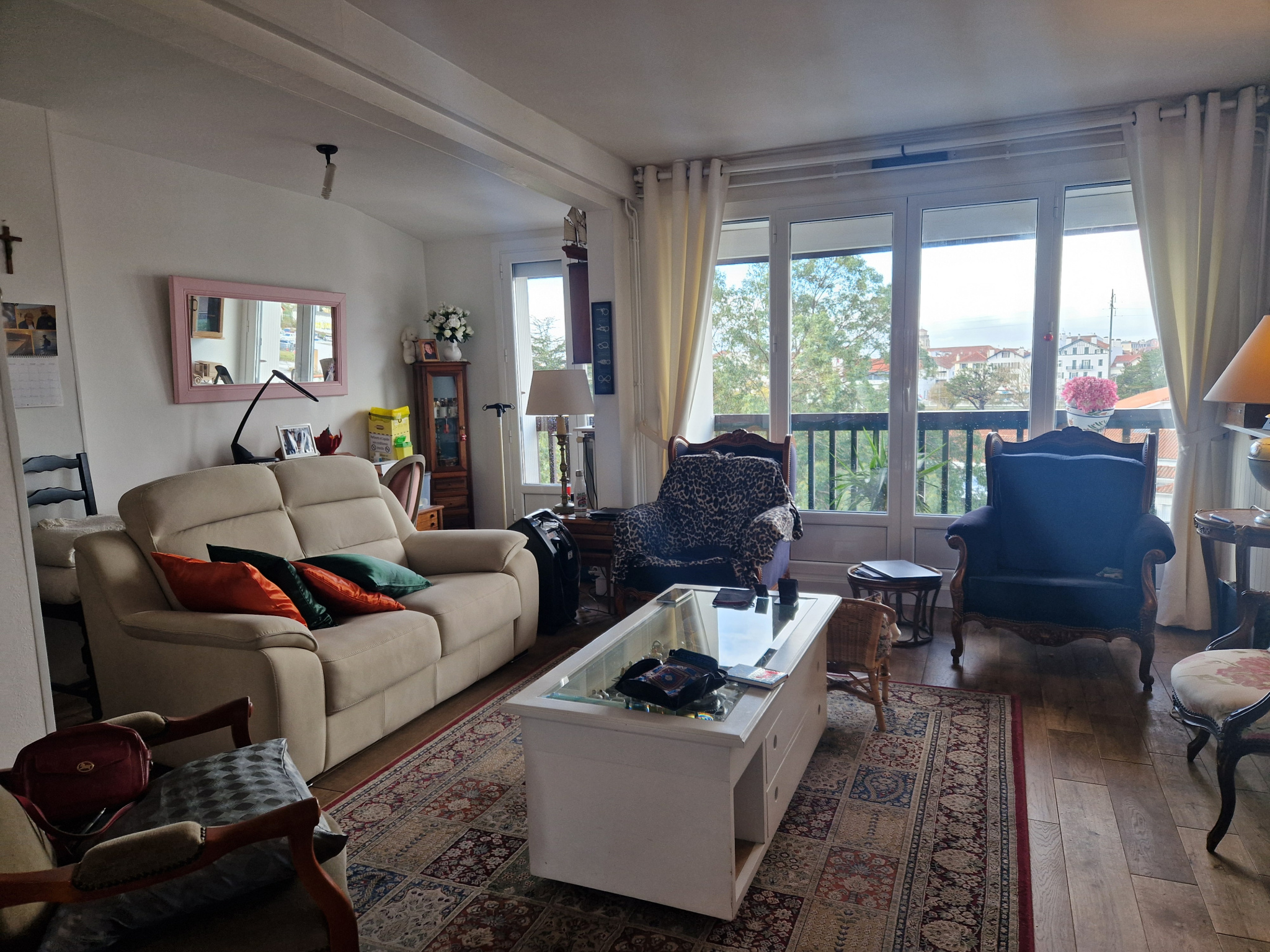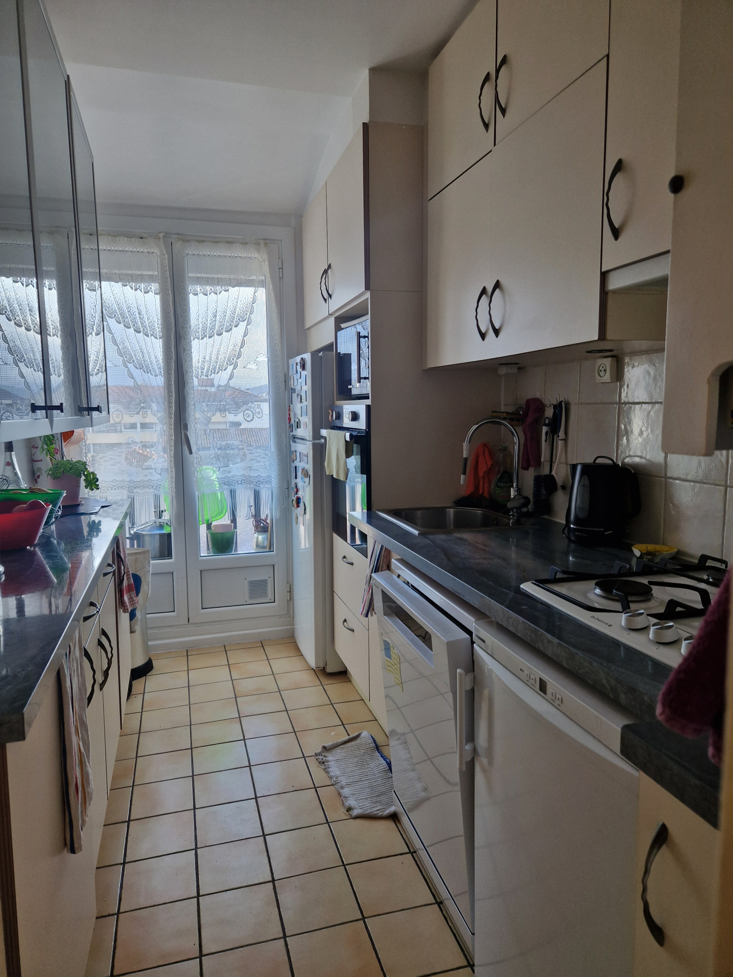 Appartement traversant Est-Ouest avec deux balcons, vue dégagée de chaque côté. L'appartement se compose d'une entrée, cuisine indépendante, salon-salle à manger, deux chambres avec salle d'eau et WC, à l'étage se trouvent deux autres chambres et un WC.